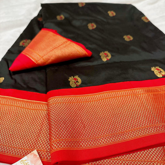 Sold outCharcoal Spark Silk Paithani